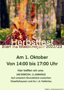 Am 1. Oktober ist es jetzt so weit wir starten in das neue Waldkinojahr mit einem Herbstfest.